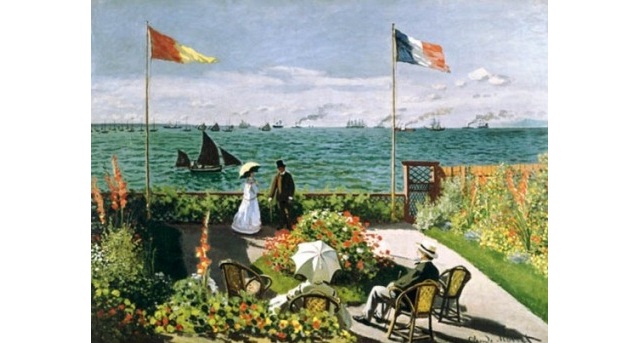 5. LA TERRAZZA DI SAINTE ADRESSE di Claude Monet (1867) – Questo glorioso dipinto presenta un parallelismo evidente con la tela di Diebenkorn, che rappresenta il mare come amichevole, accessibile, quasi come momento ricreativo per la società. Anche in questo caso, la composizione si articola su tre livelli -cielo, mare e terra – ed è organizzata verticalmente da due grandi bandiere che sventolano a causa della brezza dell’oceano.