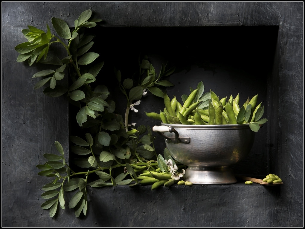 Probabilmente perché il cibo è sempre stato il leitmotiv della mia famiglia, i nostri cromosomi sono nati con le posate e la bavaglia addosso. Mio nonno faceva lo chef sulle navi da crociera, mio zio era chef Cordon Bleu de France, mio papà un famoso chef barman a cui sono stati riconosciuti premi importanti. La ristorazione, anche ad alti livelli, è sempre stata di casa e stiamo portando avanti la tradizione, infatti anche mio figlio è un cuoco. In ogni mia foto, uso ogni cura possibile sui miei soggetti, non amo chi li definisce “nature morte” perché sono molto più vivi di tante persone che conosco! I soggetti di “Caravaggio in Cucina” arrivano direttamente dal mio orto, posso testimoniare che sono più che a Km zero, non potrei lavorare se non su primizie freschissime che restituiscano quei colori e quella bellezza che voglio ottenere immortalandoli.